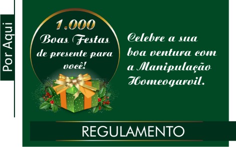 Toda compra efetuada está automaticamente inscrita para participar do programa, através do cupom fiscal de compra emitido pela farmácia. O cliente participa com todas as suas compras, seja uma ou várias. É fundamental que o cliente tenha cadastro atualizado na Farmácia Homeogarvil. O cliente não precisa fazer nada, não precisa preencher cupons e não há valor de compra para participar. Para efeito de inscrição no programa será considerado o número do cupom fiscal de compra, durante o período de vigência da ação. O programa é válido para os clientes residentes em Ituiutaba e região do Pontal do Triangulo Mineiro/MG. Funcionários da Farmácia de Manipulação Homeogarvil não participam desta modalidade.